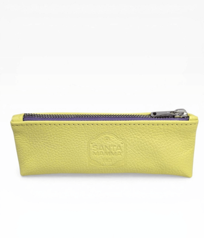 Astuccio in pelle bucciata gialla della linea “Santa Mamma”, realizzato a mano e 100% Made in Italy. Compatto e resistente, è perfetto per organizzare piccoli oggetti, cosmetici o accessori da portare sempre con sé, in borsa o in auto.