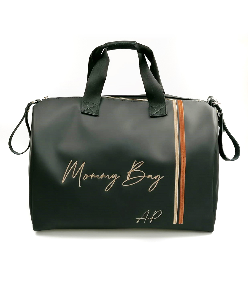 Bauletto multifunzione per passeggino realizzato a mano in gommato nero di ottima qualità. Nome ricamato personalizzabile. Due comode tasche per organizzare tutto ciò che occorre per un’uscita fuori porta: pannolini, biberon, fasciatoio da viaggio e molto altro! TICI Handmade, avendo a cuore i desideri delle mamme, progetta le proprie Mommy Bag seguendo le tendenze del momento e, al tempo stesso, garantisce il massimo comfort alle proprie clienti. Acquista una nostra borsa personalizzata per passeggino per una passeggiata con stile!