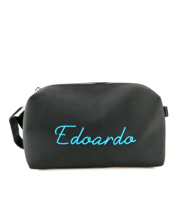 Una borsa multifunzione con la sua pochette realizzati entrambi con materiali di alta qualità , personalizzabili ed utilizzabili anche quando Alessandro sarà più grande.