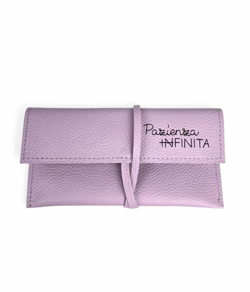 Customizable with the phrase “Infinite Patience” or with embroidered initials, it becomes a unique and meaningful gift for your mother. A useful accessory that combines functionality and style, transforming into an original and personalized thought. Dimensions 20 x 10 cm (closed) | 20 x 16.5 cm (open)