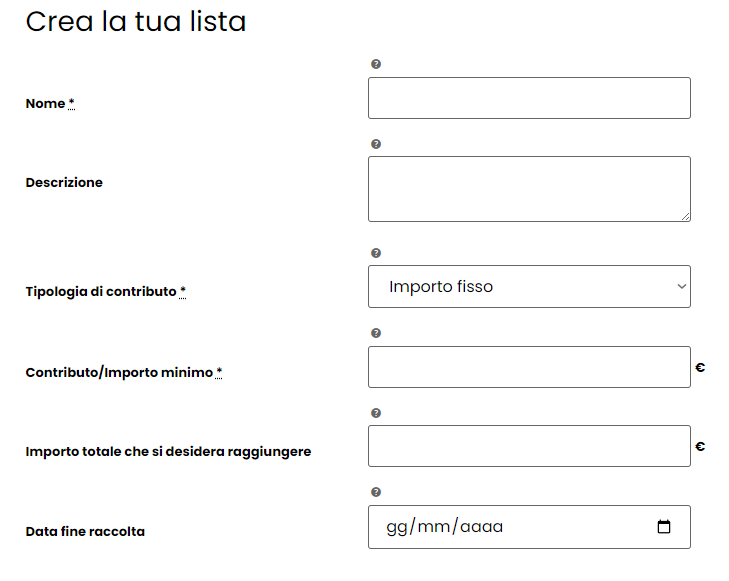 Crea la tua lista Regalo inserendo tutti i dettagli richiesti, come: