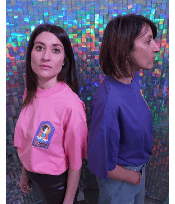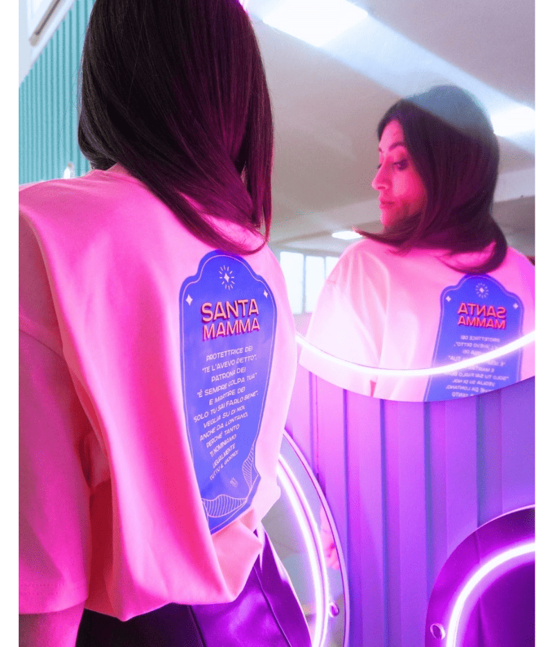 Lavare con colori simili, non stirare sulla stampa, lavare e stirare al rovescio.
